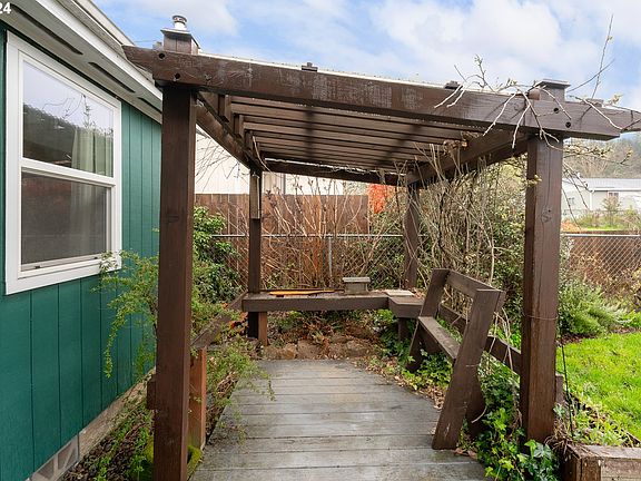 WOW! You'll love this move-in-ready affordable Yoncalla home! This comfortable 2 bedroom 1 bath features a tile entry, laminate floors, high ceiling, and ductless heating and cooling. The kitchen features a pantry, tile countertops, built-in dishwasher and attached laundry room with additional storage. Both front and back yards are fenced and private with mature landscaping that will is absolutely beautiful in the Spring when the whole yard is in bloom! You'll love the water feature koi pond, covered porch, and pergola for enjoying your outdoor oasis! Two sheds offer plenty of storage for all of your toys and gear. Schedule your private tour today!