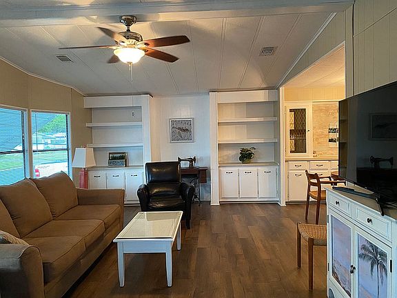 DOUBLE WIDE MOBILE HOME located in Palm Lake Estates, an over 55+ senior living community. Two bedroom, 2 bath, 1300 square feet air conditioned living space. All appliances included, screened in lanai. Bonus room, built in cabinets in living room and dining room. Fully updated and modern. Lot rent is $585 a month. Nestled off the beaten pass, at the end of Fell Road (off of Hollywood Blvd. between Henry and Westgate) lies Palm Lakes Estates. Residents own their homes and pay lot rent. With just 204 homes, this community easily feels like home.