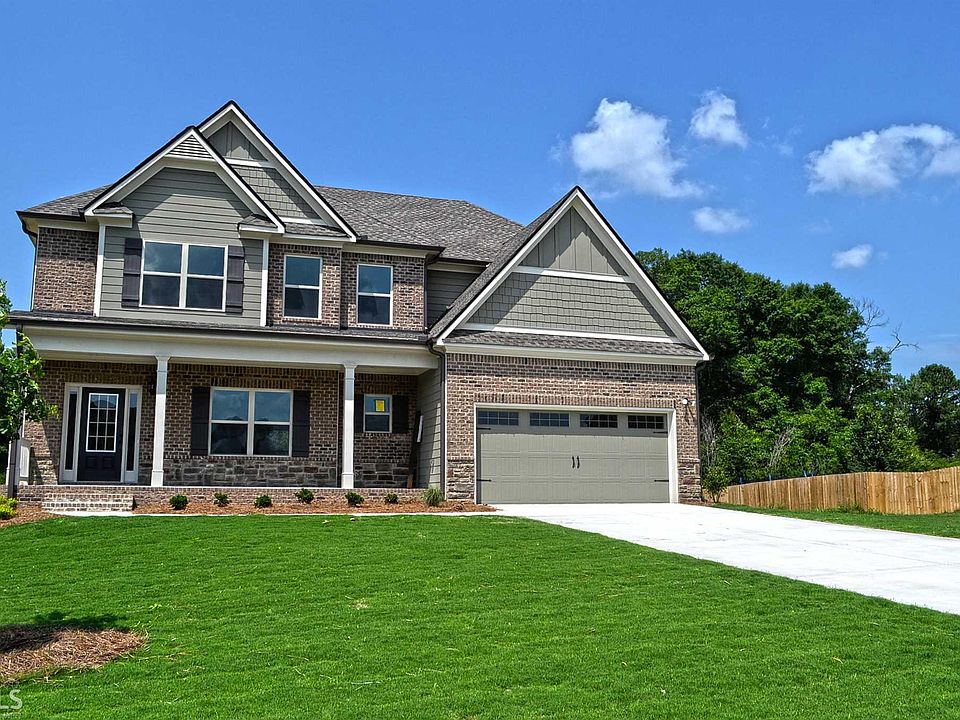 The Knollwood - This 5 bedroom, 3 bath home features a separate dining room with hardwoods and secondary bedroom with a full bath on the main level. The spacious kitchen with hardwoods, granite countertops, island, walk-in pantry, upgraded backsplash, and breakfast area opens to the fireside family room. The master suite with trey ceilings is on the second floor with a large, tiled bath with separate vanities, separate tub and shower, and his/her walk-in closets. Upstairs, there are 3 additional bedrooms, a full bath, laundry room, and loft.