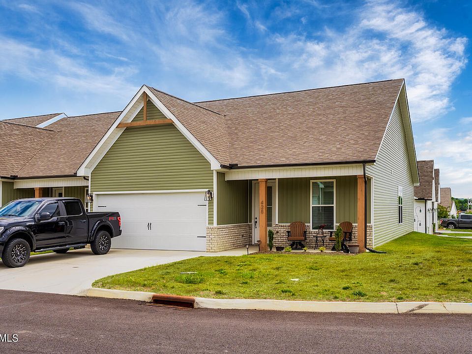 Location, Location, Location! This beautiful condo is only a year old, with a back deck added to the covered porch for entertaining and relaxation. Spacious and inviting interior with plenty of natural light. Combo living/dining/kitchen with cathedral ceilings, split bedrooms, and a 2 full baths. Nice size closets, separate laundry room and 2 car garage with plenty of room for storage. Nice level driveway, long enough to park your truck! HOA covers maintenance of lawn.