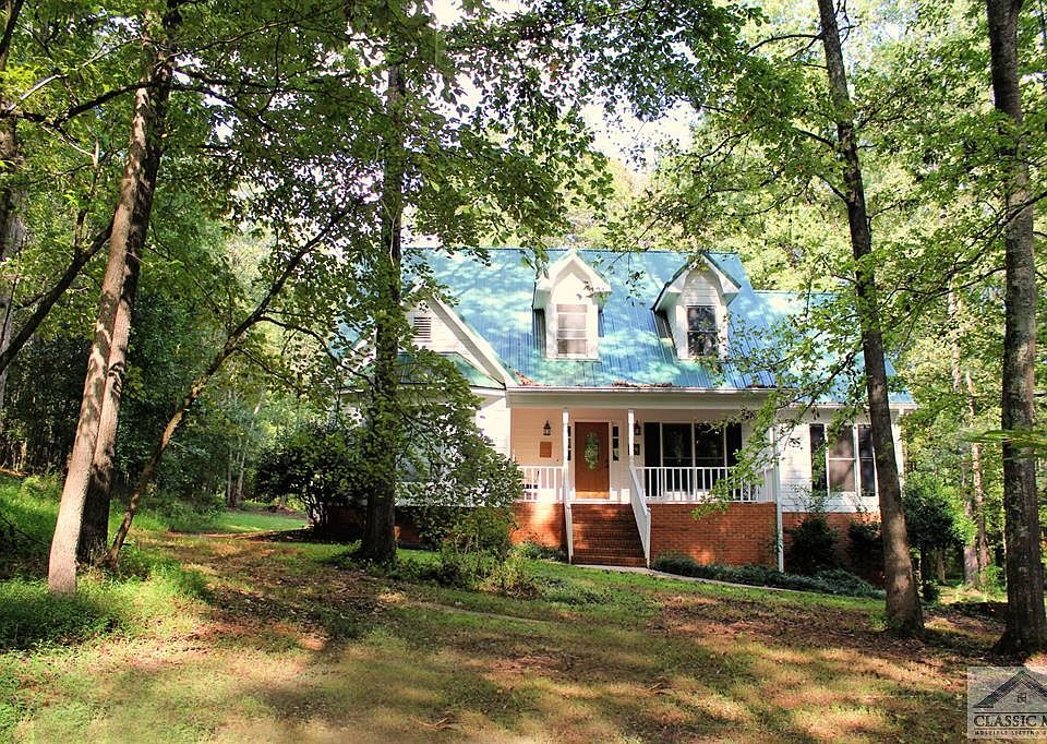Incredible 4.8+ acres of privacy in a fabulous location! Just minutes from I-85! Features master suite on main level! Upstairs you will find 3 very spacious bedrooms. You'll love the real red oak hardwood floors on the main level. This home also features a recently added metal roof; remodeled kitchen with stainless appliances, cherry stained cabinets, marble countertops, and many more updates! Large parking area plus a built in garage in the basement. The basement also features area for storage or finish for expanded living area. Enjoy the front porch and the rear covered deck! Plenty of woods for privacy plus open areas for play and gardening! Storage building included! No HOA and no covenants!