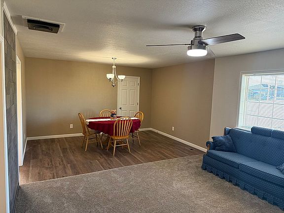 • The main floor features an open living room-dining area with convenient kitchen access.