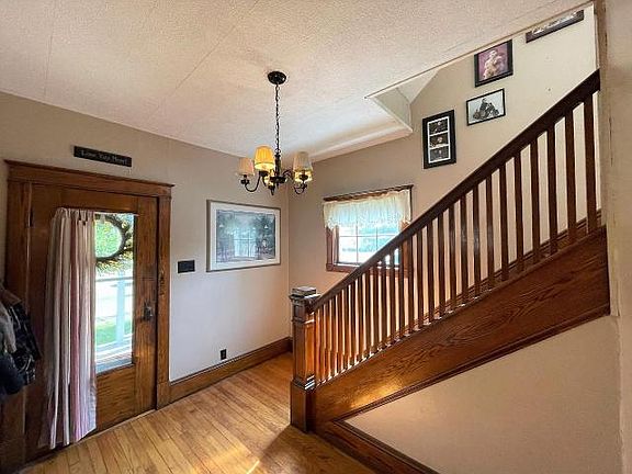 Move in condition home with lots of updates. The first floor with natural woodwork throughout features a large foyer with french doors that lead to the living room. The living room has hardwood floors and a fireplace. The dining room flows to the updated kitchen with bar style seating and appliances included. The first floor master bedroom has a high end, updated on-suite bathroom. The second floor features three additional bedrooms and another full bathroom. Other features include a large front porch, deck and a two stall attached garage. Call today for a showing!