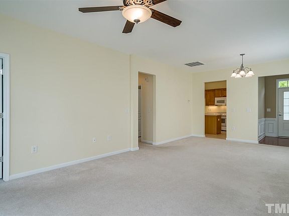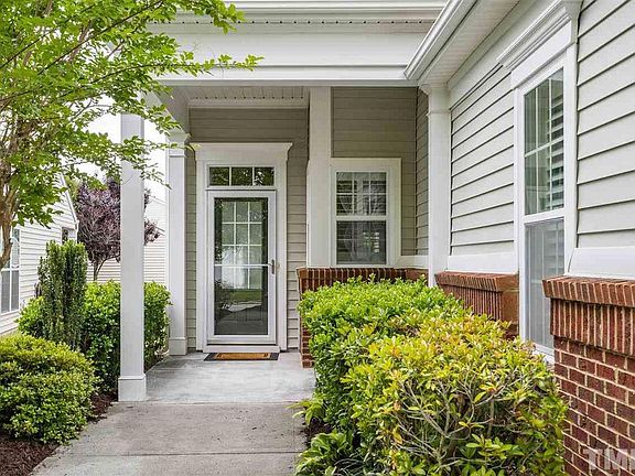 Don't miss this opportunity to live in one of the most active communities in the Triangle! This beautiful home backs to HOA land which allows for privacy on the covered porch or extended patio! Located close to the large amenity center, it is only a quick walk to enjoy all the activities! The large kitchen has under cabinet lighting, beautiful cabinets, solid surface countertops! Plantation shutters throughout and freshly painted! Don't miss the walk up storage in the garage! Beautifully maintained!