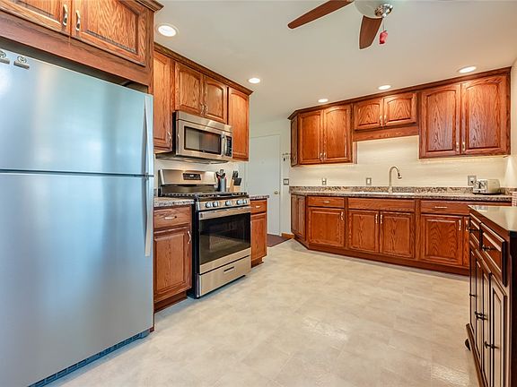Enjoy one floor living in this well cared for 3-bedroom 2 bath ranch home. This home is move-in ready and very low maintenance. Many updates have been done including a new tear off roof done in 2019, new 200-amp electrical service in 2022, new appliances and updated recessed lighting added throughout. In the living room, dining room and bedrooms you’ll find hardwood flooring. The living room offers a gas fireplace and plenty of natural light. Off of the formal dining room, there are sliding glass doors that look out into the beautifully and professionally landscaped backyard. Through those doors is a two-tiered deck, complete with an awning, fully fenced in yard and a brand-new shed added for additional storage. The front landscaping has been completely redone with a new concrete walkway, opening up the space in front of the home, making a usable and enjoyable front porch area. The heated 2.5 car garage has a newer epoxy floor. Please see the full list of upgrades totaling over $90,000 in the attachments. This home has been meticulously cared for and maintained.