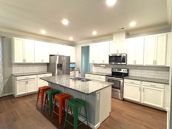 Walkability score is off the charts!! Live in the heart of Holly Springs; one of the best small towns in America. Meet this beautiful 4 bedroom home with an open kitchen that looks over the fenced backyard with a large patio for entertaining guests. Huge family room and dining room along with a study or home office. Upstairs is the primary bedroom along with 3 additional bedrooms and a loft. The second floor also boasts a big 'ole laundry room. You can walk to Sugg Farm, Bass Lake, Womble Park, and Downtown Holly Springs. New flooring installed in 2024, upstairs and downstairs. This home is right in the middle of all that is happening in Holly Springs.