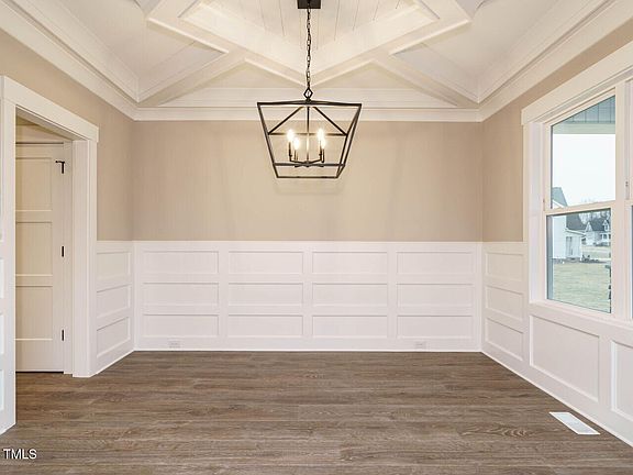 BEAUTIFULLY crafted home offering 4 bedrooms, a bonus room, an office, and an extra flex space!! Primary on the main floor!! Built by a local builder known for quality craftsmanship, this home features gorgeous wood details, including wainscoting, coffered ceilings, and custom wood shelving in all closets. The STUNNING three-panel glass and wood front door sets the tone for the elegance inside. A three-car garage provides ample storage, while the private, wood-lined 0.75-acre cul-de-sac lot offers a peaceful retreat. Located just minutes from McGee's Crossroads and less than 30 minutes from Raleigh.