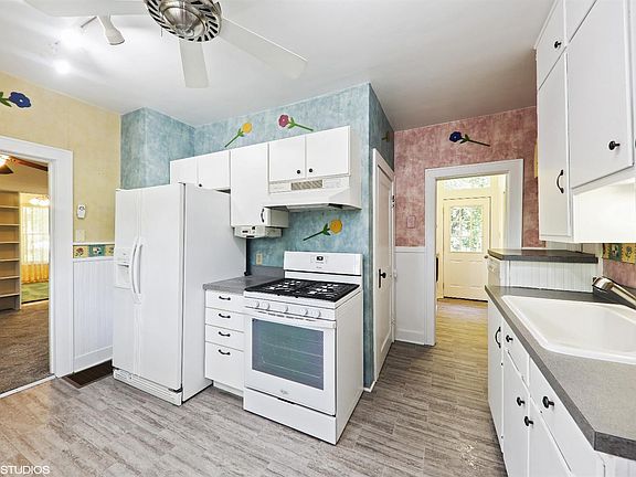 Tucked back off the road and shaded by mature pines, this 1900 farmhouse known locally as The Pinecone House, has been lovingly maintained over the years. Inside you'll be greeted by the warm and cozy entry room with knotty pine walls. There's and office or bedroom with hardwood flooring off of the living room space. More bedrooms upstairs with a family space. Plenty of storage throughout the home, too. Outside, on just over a half acre, you'll find plenty of space to play or enjoy tinkering in the attached workshop. Even the 2 storage buildings are cute! A few minutes from everything like Lake Michigan and Washington Park, Outlet Shopping, and The Uptown Arts District, convenient for commuting too.