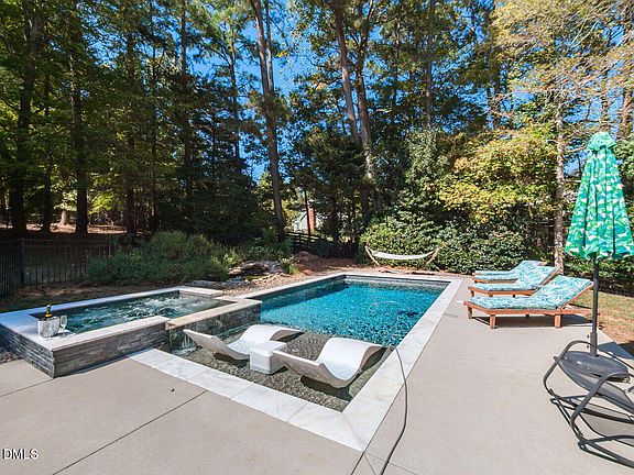 Accepting back up offers. Welcome to your private oasis in the desirable Bridgepoint subdivision, just minutes from Six Forks and I-540. Relax on the expansive back deck while overlooking the sparkling heated saltwater pool, attached spa, and 1.2 acres of serene, wooded landscape. The pool is six feet deep, low-maintenance, and can be effortlessly managed from your phone. There is also a fully established and thriving koi pond located just behind the pool. Inside, you'll find a bright, open floor plan with a first-floor primary suite. Upstairs offers three additional bedrooms and a full bath, perfect for family or guests. The basement is already underway with drywall, electrical, and HVAC (HVAC and electrical were permitted), giving you a head start to create the space you've been dreaming of. This home is truly one-of-a-kind—don't miss your chance to make it yours!