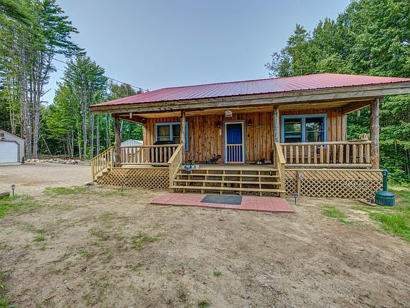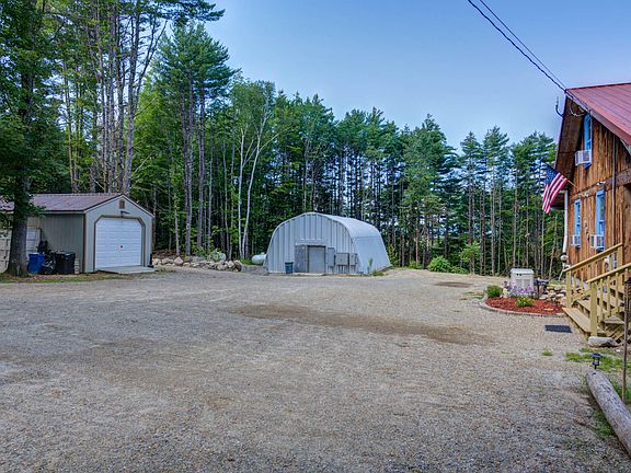 NEW PRICE!! This home is perfect for anyone looking for a cozy yet spacious, comfortable home, in a private and peaceful setting. The home offers 3 bedrooms, large open cathedral ceilings in the kitchen and living room, two finished rooms, efficient gas-fired stove, metal roofing, and an exterior generator on a 500-gallon propane tank in the event power goes out.. The front porch is the perfect place to sit and watch the wildlife abound and the rear deck offers a scenic backyard and seasonal mountain views. All of this is situated on manicured 1.8 Acres. What makes this home even more interesting is the 28x42 Quonset building! This building is fully insulated and has radiant heat running through the slab all stubbed out and ready to go, its own 1000-gallon propane tank, and 600 amps of power. Could be used for multiple adventures, horticultural, autos, or whatever zoning allows for. There is also, a one car garage which has been converted into a nicely finished main room and an office in the rear. Come enjoy all this property has to offer, only minutes to Shawnee Peak, Bridgton, 30 min to North Conway NH, and outlets, 1 hr. to Portland, and local area beaches.