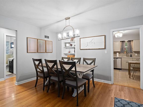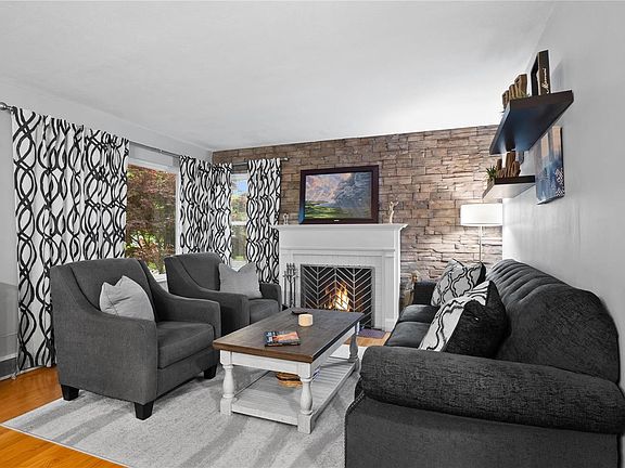 Here is a cute 2 bdrm/2 full bath home in Webster is absolutely move in ready & you'll love the amount of natural lighting flowing into it! The living rm has beautiful hardwood flooring, corner windows & a woodburning fireplace w/a stone backdrop. The dining rm is also hardwood flooring & has built in shelves. The updated eat in kitchen is equipped w/ss appliances, a convenient coffee nook & ample pantry space for all your culinary delights. With large windows & built-in shelves/cabinets, the breezeway is space with endless possibilities as an additional family rm, office, or playroom. Both bdrms have hardwood flooring & the master has 2 closets. The pro finished LL is a haven for relaxation & entertainment w/a family rm, play area, gym space, a full bath & ample storage options. The level, fenced in yard has newer landscaping and paver patio. Water heater is about 7 yrs young. The roof is only about 10 yrs. And you have the added convenience of an attached garage