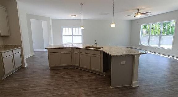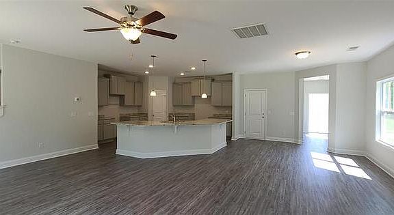 Enter the fully open Victoria plan by Hurricane Builders where entertainment meets luxury. When you walk down the hallway with a coat closet and half bathroom prepare for your jaw to drop as you enter this fully open first floor. Your eyes dance through the dining, living and kitchen area lead by the flow of the elegant lvp floors that draw your gaze into the beautiful windows and sliding glass door showcasing the spacious private backyard. The living area flows effortlessly into the kitchen only stopping to be mesmerized by the oversized center island with the sink adorned by beautiful light granite counter tops that match perfectly to the grey cabinets. This kitchen boast a walk in pantry and room enough to be any cooks favorite place. Don't stop there! Walk upstairs where you are greeted by a beautiful open hallway that to your right leads you to a master suite fit ready to become your luxurious get away. With room for a sitting area or whatever you need, its going to be hard to want to leave. Complete with a full master bathroom with double sinks and a large closet. This home has 2 additional spacious secondary bedrooms further down the hall giving the master suite complete privacy. Each additional bedroom has a large walk in closet. You will also find full bathroom and a large laundry room on the second floor. Welcome home.