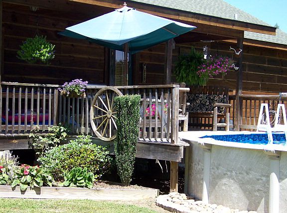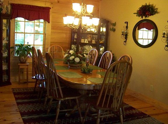Seller is relative of listing agent.Beautiful log home w/44 acres.Open floor plan, great room w/vaulted ceilings,stone fireplace, formal dining, pine floors, 24' above ground pool, 24x24 shop wired, 28x40 workshop wired & water,stainless steel appliances, 8x37 front porch & 15x24 back porch, walk in closets, 11x24 boat shed, 12x20 tractor shed, hand crafted cabinets, 2 wood blinds, Trane heatpump