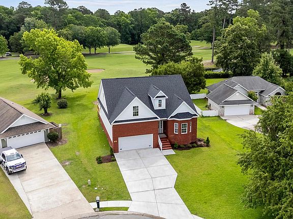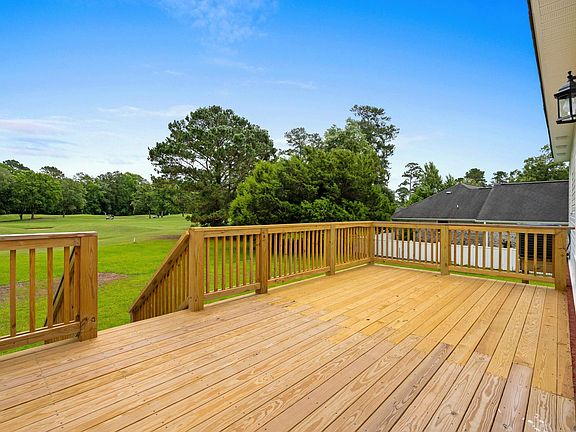 This beautiful 4-bedroom, 3-bathroom home in the Aberdeen Golf Community, Longs, SC, sits on over a third of an acre right on golf course, offering both privacy and scenic views. The custom design begins at the entryway, where a stunning wood coffered ceiling in the foyer sets a warm, natural tone that continues into the open-concept living room creating a seamless and inviting aesthetic. The spacious layout features a first-floor master suite with a luxurious master bathroom, complete with a walk-in tile shower, garden tub, and double vanity. Two additional bedrooms and a full bathroom are also conveniently located on the main floor. Upstairs, the large fourth bedroom serves as a versatile bonus room with its own full bathroom, perfect for guests or as a private retreat. Designed with custom features throughout, this home combines elegance and functionality in a tranquil golf-course setting—ideal for those looking to enjoy refined living in a beautiful community.