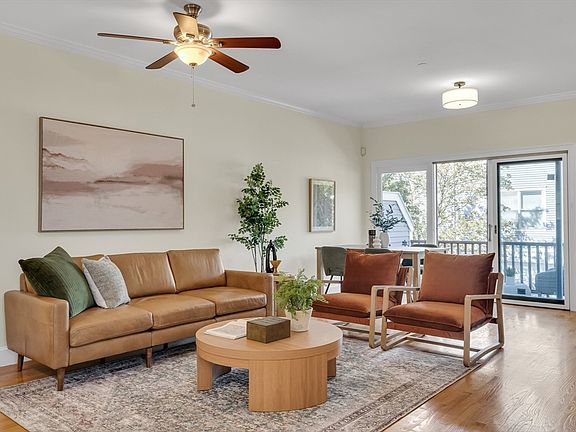 Discover a rare gem in city living with this townhouse-style condo, complete with garage parking. This exceptional corner, multi-level home boasts 3+beds, 2.5 baths, 2 parking spots and 2,000+sqft. An open-concept living area, perfect for entertaining, features hardwood floors, a walk-out mahogany deck, great natural light, and gas fireplace. The large kitchen has gas cooking, stainless steel refrigerator, ample solid wood cabinets, and beautiful granite countertops. The spacious primary suite on the top floor features vaulted ceilings, multiple closets, and ensuite bath with a large vanity and dual-head shower. Two generous bedrooms, a designated office, and a full bath with a Jacuzzi tub complete the third floor. The entry level provides additional storage and a large laundry room with direct access to the garage and new HVAC. Close to the renovated Charlestown pool, local parks, restaurants, and the planned waterfront reconnection, this home offers the best of city living!