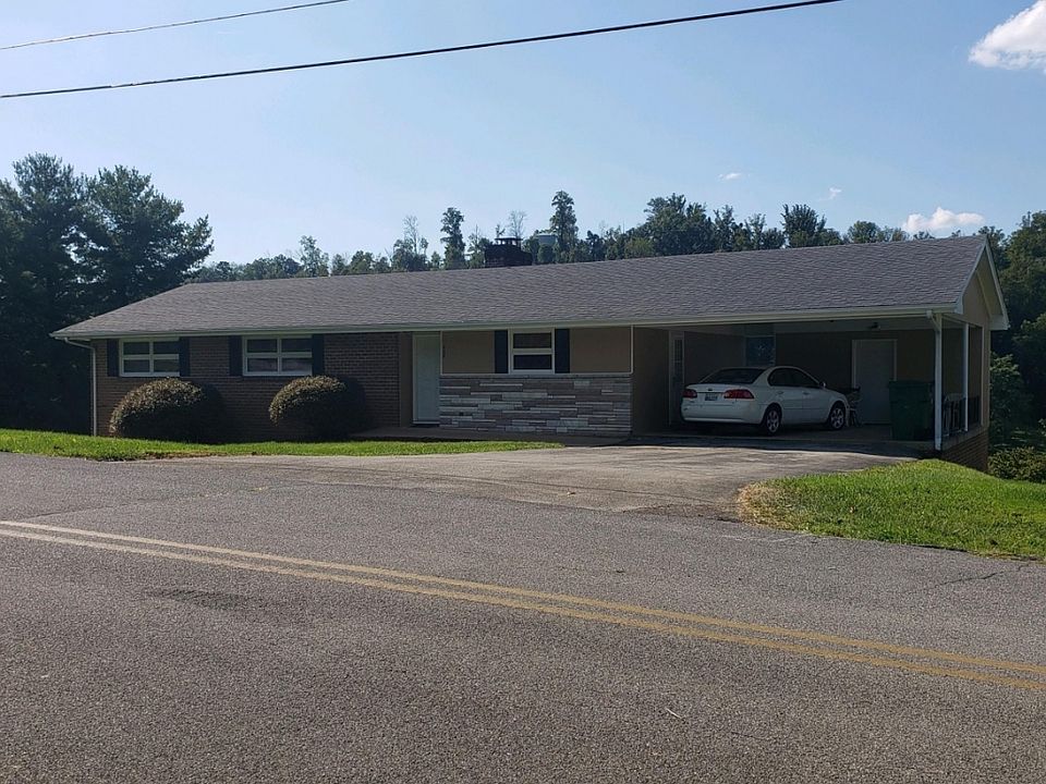 Great location for you new home. A brick ranch with a covered carport parking. Five bedrooms three full baths. The main level has three large bedrooms all with great closets, plus two full baths with plenty of mirrors. The great room has a wood burning fireplace, lots of windows and all of main level has hardwood floors and tile. Downstairs can be used as a second living area with another large bedroom, kitchen, full bath and one car garage...two additional large rooms unfinished for storage.