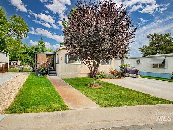 Fantastic newer 2017 manufactured home in the centrally located all-ages mobile home community, Rustic Acres. Move-in ready and well-maintained home and lot! The covered front porch invites you into this 3-bed, 2-bath home with split bedroom floor plan, large open kitchen with lots of counter space and breakfast bar. Partially fenced backyard has large trees, huge double shed and shop with electricity to it and workbench, raised garden space. 2-car driveway with plenty of room for parking. Lot rent is $1020/month, water is included.