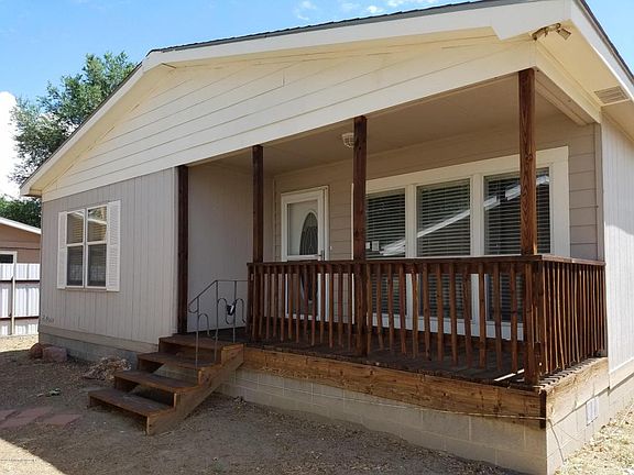 Looking for a home now? This 3 bed 2 bath Manufactured double wide is ready to move into! It has been cleaned and painted from top to bottom. Repairs have been made and the foundation is FHA ready. This home has so many great features including built-in storage, tray ceilings, refridgerated air, an office/den space and a detached single car garage and workshop. The kitchen provides ample cabinet space and an island. Walk outside onto the covered back deck or front deck and you'll be surrounded by large trees that provide shade for those hot summer days.