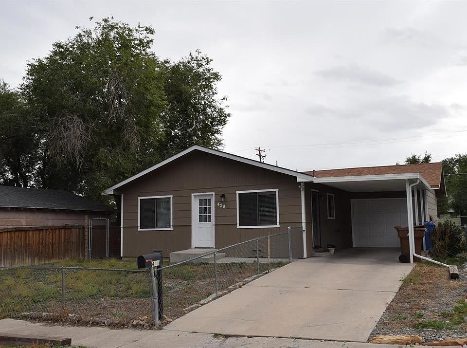 Affordable Ranch Home 3 Bedrooms, 1 full bath, 1 car garage plus carport. Great entry level home one block from elementary school and close to parks. Perfect opportunity to purchase a home with lots of potential. New interior and exterior paint in 2019, new roof shingles in 2015, new gas water heater in 2018, new carport awning in 2020. Newer stainless appliances are included. Center island, corner lazy-susan in cupboards, built-in shelves on each side of the kitchen sink. Newer Laminated wood flooring in kitchen and bathroom. Kitchen/dining opens to living room making the space feel larger. Yard is fenced but otherwise a blank slate; improve it to your taste and style. Property backs up to the alley. Plenty of room for RV parking if needed.