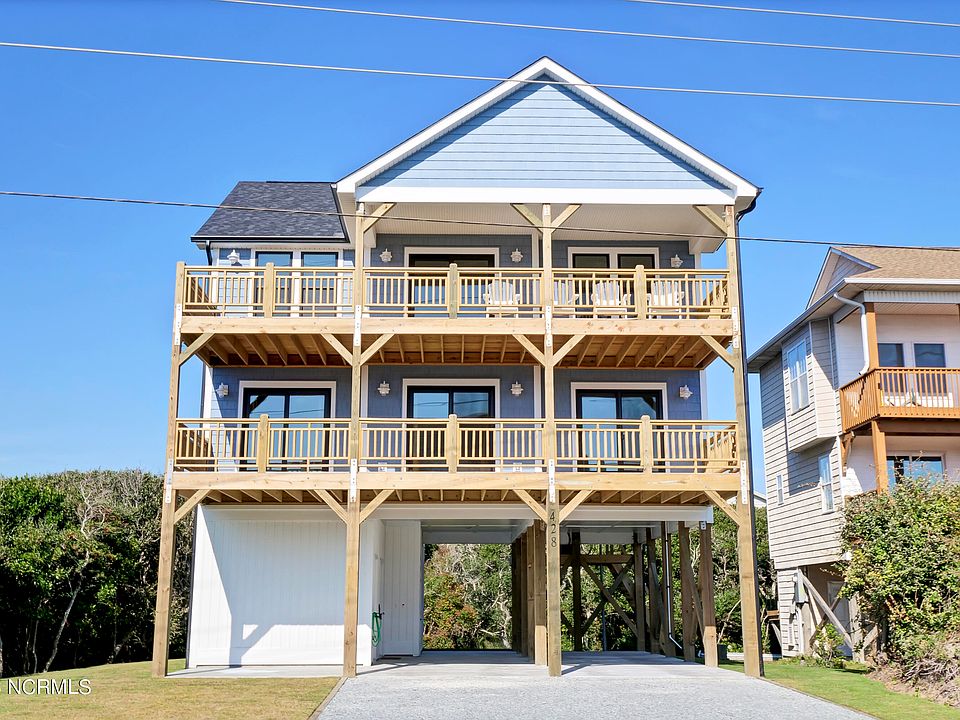 Welcome to your dream beach house in the highly sought-after location of south Topsail Beach. This brand new, second-row home boasts incredible ocean views that will take your breath away. The open floor plan is accentuated by vaulted ceilings, creating a spacious and airy atmosphere that is perfect for entertaining or simply relaxing.