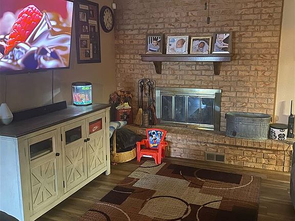 Nice 3 bedroom, 2 bath home. Lovely fireplace. Nice covered patio. Has a storm shelter. Nice detached shed or office with a garage door. Nice sized kitchen.