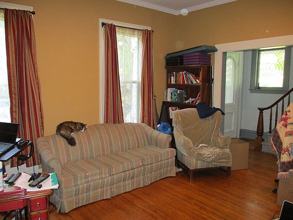 Literally one of a kind Italianate bordering Cascadilla Creek and only a 3 block walk to the commons! Ideal for Porchfest, Halloween, Ithaca Festival, and other Ithaca Commons events. High ceilings, light filled, leaded windows, oak floors, and a versatile floor plan (see floor plans)! Outside offers a spacious porch, charming two floor carriage house with cupola, and a fenced in side yard Four bedrooms upstairs plus former kitchen now used as a laundry room. Five rooms downstairs, including two rooms that could be used as bedrooms. Excellent location for gardening, with lots of sun. Apple, peach, nectarine, and peach trees, six grape vines, six raised beds.