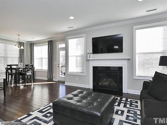 Traditions in Wake Forest! This captivating open concept home really stands out. Impeccable kitchen w/ large island, granite counters, Stainless Steel appliances and tile backsplash. Walk in pantry and butler's pantry. Wide plank flooring on 1st floor. Separate dining room and private office - could be 5th BR. Upstairs features the master bedroom as well as 3 additional bedrooms and a loft. One bedroom w/private bath. The rear of home backs to a private natural landscape. Fenced yard. Pool & Parks!