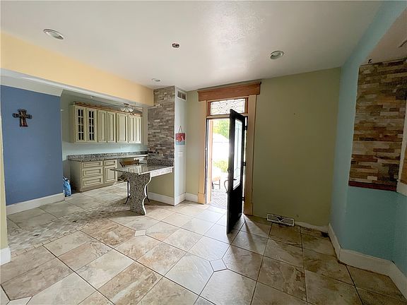 Come put your finishing touches on this classic 3 story brick home on a quiet street in Ambridge. The main floor is open and bright with tile throughout and a half bath. The kitchen boasts granite countertops with a matching built in table. Heading upstairs, you’ll find two bedrooms, the large main bath, and a second-floor laundry room. The third bedroom is located on the top floor and has vaulted ceilings, sky light, and small balcony with full door and sidelights. Enjoy the private back patio and well landscaped yard complete with a storage shed and alleyway access.