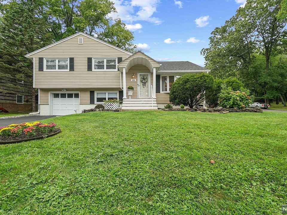Pristine light-filled and spacious NEWLY RENOVATED delightful Split-Level home encompasses all of the charm and elegance one's heart would desire. Sequestered on park-like, landscaped private grounds set back nicely from the road, this very special home enjoys an equally special location, one complemented not only by a top-rated school system but also with convenience to parks, shopping, area highways and close to NYC transit both train & express bus. Distinguished by beautifully proportioned living spaces & a relaxed open floor plan, this 3 BR, 2 FBath home with bonus basement lvl accommodates grand entertaining & comfortable daily living with grace and ease. New Kitchen w/Quartz & SS Applcs; new baths; gleaming hardwood floors throughout; new roof; new siding; newer windows & doors, expansive rear yard with patio. Entertaining main level with open concept kitchen / dining / living rm; inviting family room plus lower level part fin basement. PRIDE of OWNERSHIP, not to be missed!