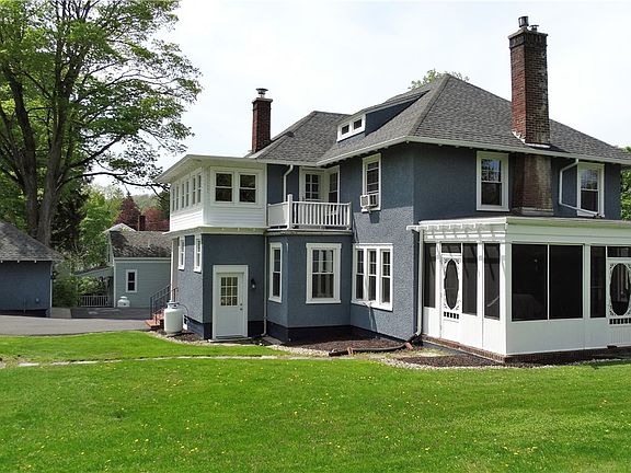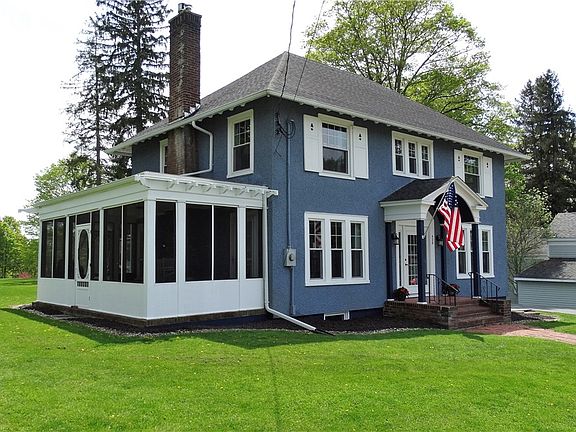Immaculate and pristine, this outstanding Foursquare village home is an absolute true gem! Featuring three spacious bedrooms plus an additional second floor room for flexible use, offering plenty of comfortable living space. Gorgeous hardwood floors throughout adding warmth and character, with a gas fireplace for a cozy ambiance and formal dining, perfect for hosting dinner parties or enjoying family meals prepared in the spacious eat-in kitchen, with ample counter space and storage making preparations a breeze. The second-floor sun porch and screened porch off living room are terrific spots to enjoy down time, and the remarkable basement and the walk-up attic will astound you, along with a two-car garage, paved driveway and exceptional parking lot featuring an electric RV hookup. Both home and garage have newly painted stucco exterior that boasts pride and joy of ownership, with over a half-acre park-like setting, you have ample room for outdoor activities and gardening. Call today to see this exceptional property and see the long list of recent improvements! Central to Cooperstown & Utica with showings beginning on May 22nd, call to schedule today.