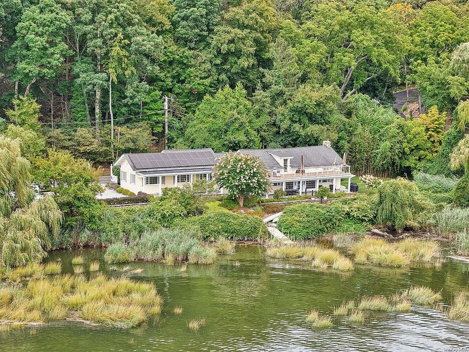 Nestled along the tranquil Nissequogue River, this exquisite waterfront residence offers an unparalleled sanctuary for the discerning buyer. Set on 4.08 sprawling acres with 970 feet' of waterfrontage in the private Village of Nissequogue, this meticulously renovated four-bedroom, two-and-a-half-bath home seamlessly blends the "charm of yesteryear"with modern amenities and sophistication. The property's allure begins with its stunning exterior, where gorgeous waterviews and beautiful plantings create a nature lover's paradise. A bluestone covered southern style back porch and private dock provide idyllic spaces for outdoor entertainment, allowing residents to bask in the glory of breathtaking sunsets over the river. Upon entering, one is immediately struck by the home's high-end custom details and quality craftsmanship throughout. The formal living room features soaring ceilings and walls of glass that provide stunning waterviews. A spacious dining room and charming kitchen, complete with authentic renovated cabinetry, farmhouse sink, ample counter space, breakfast bar, and Viking gas stove, Plus wall Oven, cater to both quiet dinners and intimate gatherings at home. The primary suite is a true retreat, boasting vaulted ceilings, a lg walk-in closet, large picture windows with river views and a luxurious bathroom featuring a custom vanity, shower, and tub. Three additional bedrooms and updated bathrooms ensure comfort for everyone. Throughout the home, thoughtful touches abound - from the original stone fireplace in the family room to the old world curved stairway and dual staircases. A wonderful large roof-top Trex deck offers another gorgeous space to relax and unwind while enjoying the breathtaking water views. Modern conveniences include: updated gas heating system, 200 amp electric, heat pumps, central air, solar panels, updated roof, updated windows, inground sprinklers, updated appliances, ample closet space, and a full house Generac generator. This one-of-a-kind property, brimming with character, warmth, and charm, offers a rare opportunity to own a piece of riverfront paradise. It's more than just a home; it's a lifestyle embracing nature, tranquility, and timeless elegance., Additional information: Appearance: Diamond+,Green Features:Insulated Doors,Location Features:Protected Wetland,Separate Hotwater Heater:Y