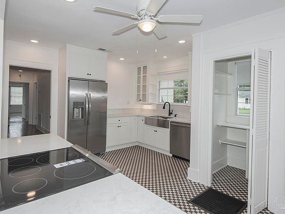Beautiful waterfront property with the best views on Bayou Davenport! Almost every room in the house has a view of the water. Sit on the porch or dock and look all the way out into Pensacola Bay, or watch the Blue Angles practice overhead. The brand new kitchen has clean white cabinets, stainless steel appliances, quartz countertops and a carefully restored vintage tile floor full of character. It's the perfect combination of modern amenities and classic charm. This house has ample living space with an eat-in kitchen, separate dining room, living room, sunroom, and an office directly off the main bedroom. Hardwood floors run throughout most of the house with tile in the sunroom and office. This is the perfect house for anyone who loves being on the water. Just minutes from NAS Pensacola, it would also make a great vacation rental. New in 2022: all appliances, tankless hot water heater, dock, plumbing, electrical. New roof in 2023.