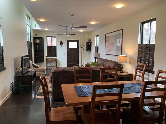 428 South Bozeman named "IDYLWEST" is a "SHOTGUN MODERN HOUSE" built in 2006 by a famous book author and is a contemporary In-town retreat in Bozeman's historic district. Designed by ThinkTank, this modern abode was given a Historic Preservation Award and was featured in "At Home Magazine" The downtown location is perfect, situated on a tree lined street close to Peet's Hill and Bozeman's charming downtown. The main floor features an open living and dining area with dark poured concrete floors and finishes in a combination of metal, wood and earth tones. Abundant natural light pours from the many windows and the upper and lower floors offer spacious bedroom suites.