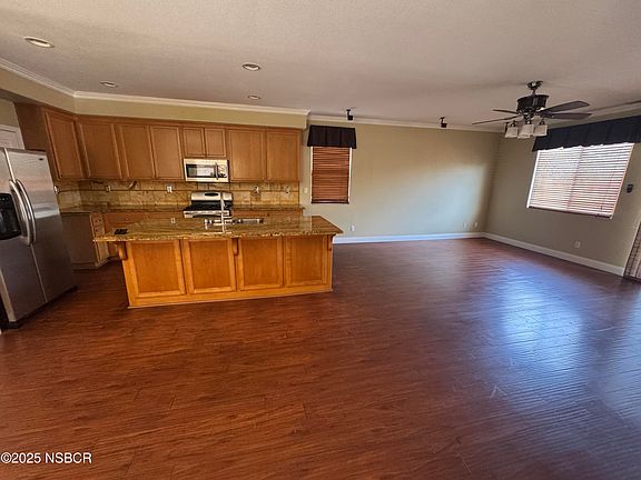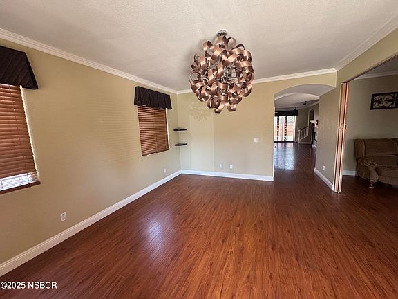 Come explore this beautiful home located in the desirable Crown Pointe neighborhood; an exclusive community of just 85 executive single family residences nestled against the scenic coastal hills on Lompoc's southern edge. Built in 2005, this spacious home offers 4 bedrooms, 2.5 bathrooms, and an open-concept floor plan with soaring vaulted ceilings, a cozy fireplace, and generously sized rooms throughout.Step inside to find gorgeous hardwood flooring, a recently updated kitchen with granite countertops, and a versatile bonus room on the main level. The inviting living room features a wood burning fireplace, perfect for adding warmth and ambiance on cool evenings.The chef's kitchen includes a gas stove, granite countertops, a center island for extra prep space, a dishwasher, and a refrigerator - making it both functional and stylish. Upstairs, you'll find a spacious family room, convenient laundry area, and a serene primary suite. Three additional bedrooms and a hallway bathroom feature a custom dual vanity with quartz countertops and an updated walk-in shower.Outside, enjoy the low maintenance backyard with a large concrete patio, ideal for entertaining or relaxing. Designed for both comfort and modern living, the home boasts stunning views and ample square footage. Tucked within the community, you'll also enjoy access to scenic trails with breathtaking views, just minutes from the ocean and offering an easy commute to Vandenberg Space Force Base.