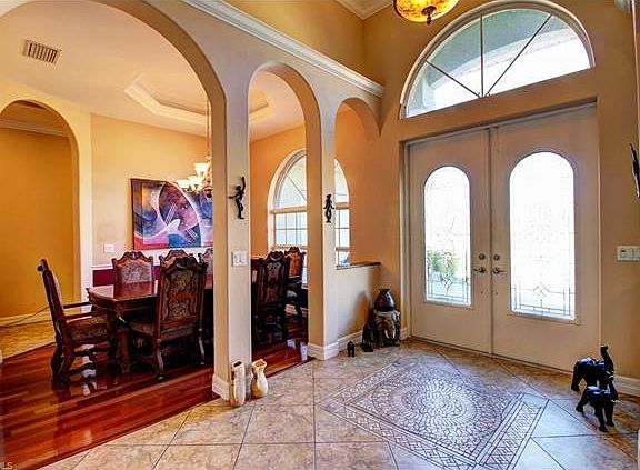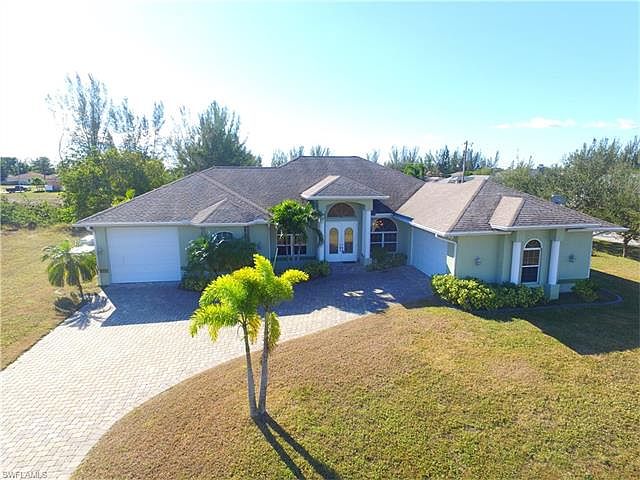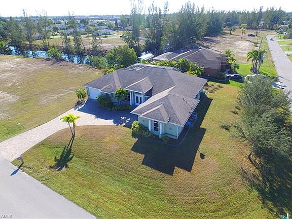 Welcome to this spacious, nearly 2500 SqFt 4 bedroom, 2 bath, 4 car garage pool home. Located in SW Cape Coral and situated on an oversize corner lot, this home enjoys a lovely foyer entry with hard wood floor den and formal dining room. The home also features a large wood cabinet kitchen and butler's pantry with granite counters and stainless steel appliances. French doors from the living area access the spacious lanai and pool area with canal views. Garage #1 is a 2 car side load that enters into the home near the laundry room. Garage #2 is a tandem garage the fits 2 cars end to end or could also be a great storage unit. On city water, sewer & irrigation and all assessments will be paid for you. This home is a must see. Call today for your private tour.