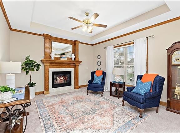 - Features: Carpet, Ceiling Fan(s), Fireplace