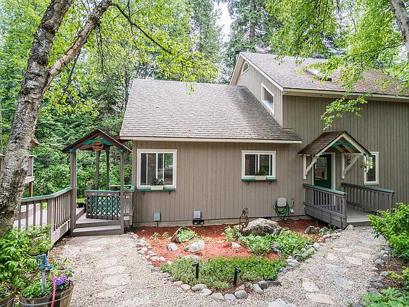 Home in the country situated on almost an acre with 3 bedroom, 2 bath and a separate guest area (400+ sf) above the 2-car garage. Beautiful updated Kitchen with new counters, slate backslash and is open to the dining room & living room with its vaulted T&G ceilings, a cozy fireplace & deck access for enjoying the outdoors. The Master Suite offers an office area or sitting room, walk-in closet & private bathroom w?Jacuzzi tub, double sinks & a shower. The laundry room offers a counter, sink & plenty of storage. 2-car garage w/extra living quarters. Expansive outdoor living areas; private hot tub, garden with raised garden beds, horse shoe court, fenced area & a storage shed. Custom woodwork throughout. Cable w/high sped internet! Award winning quality drinking water ($300 yr & no HOA dues).
