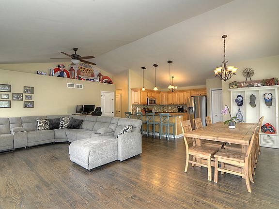 You can enjoy single level living in this beautiful ranch home! Upon entering this home you'll be greeted by hardwood floors that expand through to the foyer into the kitchen, great room and hallway, where the 3 spacious bedrooms boast plush carpeting. This open floor plan has an updated kitchen with granite countertops, SS appliances, and breakfast bar opening right up to the dining room and living room, which includes a gas fireplace and vaulted ceilings. This is truly the perfect entertainment space with entry right onto the backyard deck to allow you to easily bring the party outside! Around the corner from the kitchen is the mudroom that has been converted into a pantry. This room also features a laundry hook up if you'd prefer to move the laundry onto the main level instead of it's current basement location. Down the hall from the main living space are the 3 bedrooms, all with closet organizers. The master bedroom is privately located on it's own end of the home and includes an updated bathroom with separate tub and shower, dual vanities and it's own linen closet - the walk in closet has ample storage space. Currently, the full unfinished basement is hosting the washer and dryer, but is ready for your finishing touches - there is plenty of space to make this your own and room for extra bedrooms too! This home is located on a spacious corner lot featuring a fully fenced-in yard and a spacious deck. This home is located in a great location close to the Metra and downtown Crystal Lake where there are plenty of dining and shopping options. Prairie Ridge High School too! Welcome home!