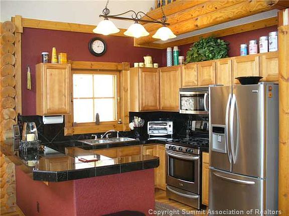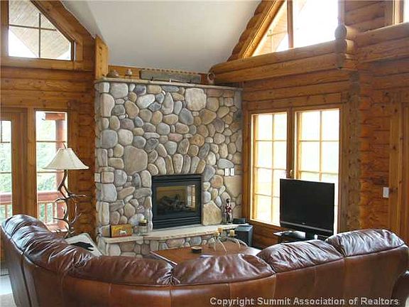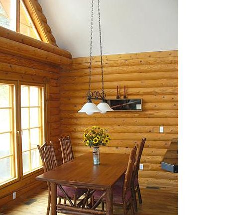 HIGH END log home. Custom kitchen with granite, stainless, hardwood cabinets. Large greatroom with soaring vaulted ceiling, hardwood floors, massive river rock fireplace, and full glass wall with sunshine and views of snowcapped peaks . Large master suite. Separate family-rec. room. Lots of sunny decking. All in IMMACULATE condition. Home is exclusive "Honka" log home. Most furniture negotiable.