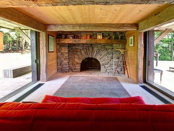 Rarely does a property come along that not only inspires the imagination, but has many unique, desirable and almost unattainable elements. The original house was built circa 1945 and then re-imagined in 1975 with many of the design features being ahead of their time. This property features the main house, a guest house, a caretakers house, tennis courts and an approximately 10 acre private lake - all in a private, beautiful location on 97+ acres of Catskill Mountain bliss. Main House MaClean lines and organic simplicity are the hallmarks for this lovely home - the house appears to be an integral part of it's serene natural surroundings. With an unique layout the kitchen is the hub of the house separating the living-room and the entertainment room. The large kitchen picture window is a wonderful place to take in the long, stunning, uninterrupted Catskill Mountain views. The two bedrooms are accessed via two separate spiral staircases - each room has it's own bathroom ensuring complete privacy. Each bedroom also has it's own private balcony overlooking the lake and surrounding mountain views. The house features massive hand-hewn beams, wood walls and two stone fireplaces - one o