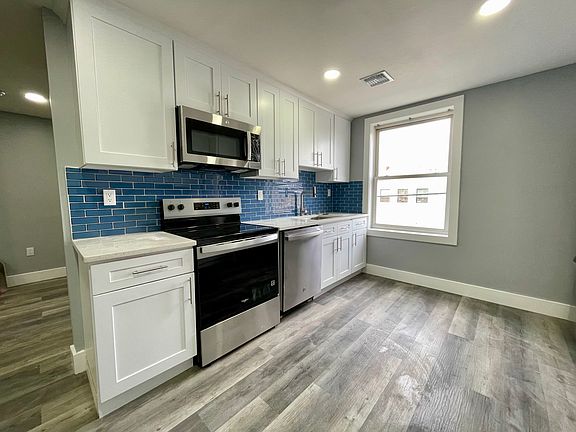 Modern and completely updated 3 bedroom, 1 bath apartment now available for rent! This renovated, open concept apartment is on the second floor of a mixed use building with a super convenient location directly across from the Town Centre Shopping Center and only 1 block from the new Lyndhurst Train Station (NJ Transit, Main Line), Township of Lyndhurst's Recreation Complex, Park and Amphitheater! Apartment features a gorgeous eat-in kitchen with brand new quartz counters, mosaic tile backsplash, NEW stainless steel appliances (including a built-in microwave, refrigerator and dishwasher), a breakfast bar, plenty of cabinets and a pantry. The living room is bright and airy. There are 3 bedrooms, one with a walk-in closet. The renovated bathroom features a double vanity sink and nice size linen closet. Other highlights include: freshly painted, new laminate and tile flooring throughout, brand new central air and forced hot air system, new windows, LED lighting and USB outlets. Tenant pay utilities, no smoking of any kind, no pets of any breed. On street parking only.
