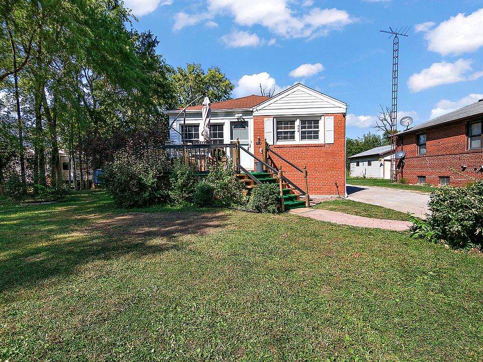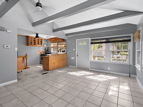 Quaint Raised Brick Bungalow on a Quiet Dead-End Street in Momence! This charming home features a spacious, newly refinished front deck (2025), perfect for enjoying peaceful mornings or evening sunsets! Inside, the open-concept living room and kitchen boast cathedral ceilings, skylights, and eye-catching exposed wood beams, creating a warm and inviting atmosphere. The kitchen is equipped with a new dishwasher (2025), a newer stainless steel stove, and open stair access to a full unfinished basement-offering great potential for additional living space or storage. The main floor includes two comfortable bedrooms and a full bathroom with an updated vanity and glass tile backsplash. Step outside to your private, tree-lined backyard retreat featuring two gazebos on a brick paver patio, a fire pit area, garden, and storage shed. A freshly painted detached 1-car garage completes the package. Located in the golf cart-friendly town of Momence, this home is close to schools, the Kankakee River, parks, and a charming downtown. A perfect blend of comfort, character, and small-town living!