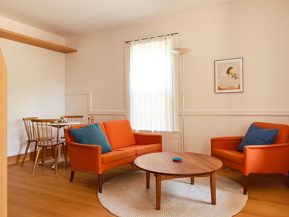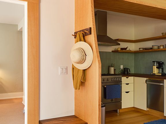 Stylish space in peaceful Point Richmond, thoughtfully remodeled by homeowner who runs a local design-mill-build business. Set back above the street (there are about 25 steps from the street level), this lower flat feels cozy and private. Douglas fir floors, clawfoot tub, and nice patio area out front. Space is currently fully furnished, with vintage midcentury furniture and quality appliances. There is option to rent partially furnished. Point Richmond feels like a little beach town and features several restaurants, a coffee shop, groceries, amazing natatorium, and a beach all within a 5 minute walk. We are very close to all that the E Bay and Marin has to offer- it is 15 minutes to drive to Berkeley/Oakland or across the bridge to Marin County. Utilities and wifi included in monthly rent. Laundry is available in a shared laundry room space. No smoking allowed.