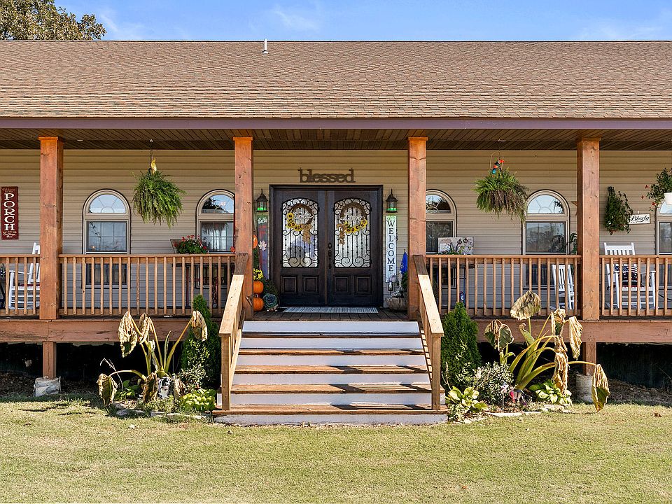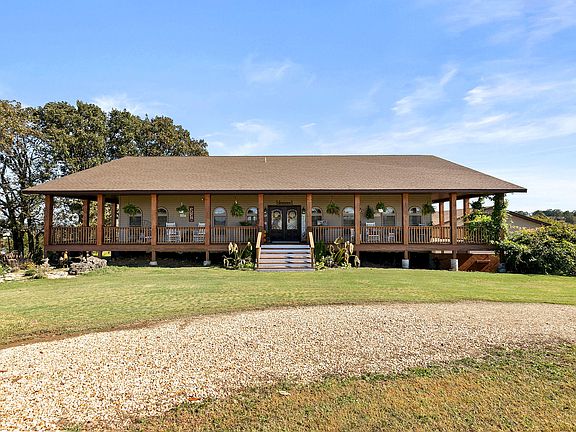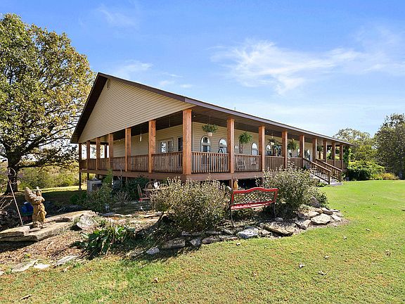 Welcome home to your retreat in the Ozark Mtns! This farm has incredible views, centrally located to the rivers, lakes and top destinations in SWMO. Enjoy the views on your wrap around covered deck. Main floor offers a foyer, formal dining, home office, craft room, master retreat, laundry, split bedrooms and of course the gourmet kitchen w granite and living room overlooking the full wall of windows and view of the river valley. Basement is extrodinary with full kit, 2nd laundry, 2 baths, 2 beds + 1 nonconform and 2nd living accented by milled cedar from the property. The 4 car detatched garage/shop has oversized doors and built in storage. The shop features a 3rd living space with 2 baths, kit, laundry, living, bed and it's own porch. Pole barn and 2 ponds. HSA provided by seller! This home is a must see!