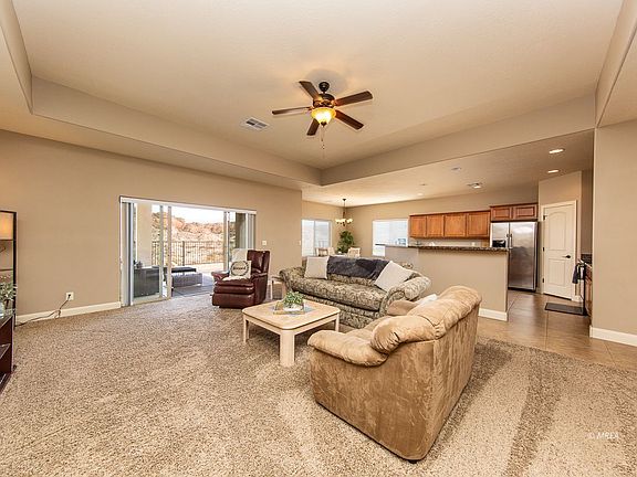 Appealing 3 bedroom 3 bath home in beautiful Sierra Ridge. This large home boasts a generous 2254 sq ft of living space. From the moment you walk in you feel how open the & spacious the layout is. Elongated front entrance set back from the road with vaulted ceilings and beautiful wall sconces. Vaulted ceilings carry throughout the home starting in the large foyer with your eyes drawn to the mountainous views just off the living room. Step outside the double glass sliding doors to the large covered patio while enjoying the scenery. There is a considerable amount of storage in the Kitchen with granite countertops, large walk-in pantry, and updated appliances. Entertain your guests around the expansive kitchen island with room for bar stools along and a sizeable dining room table. The list goes on! Separate wing for the master suite with access to the backyard, large soaker tub, standing tiled shower, double vanity and walk-in closest. In the front of the home you have another hallway leading to two large guest bedrooms and full bath. Tons of storage, laundry room w/sink and upper cabinets, and modest sized garage. The views are breathtaking views! Professional photos updated 3/19.