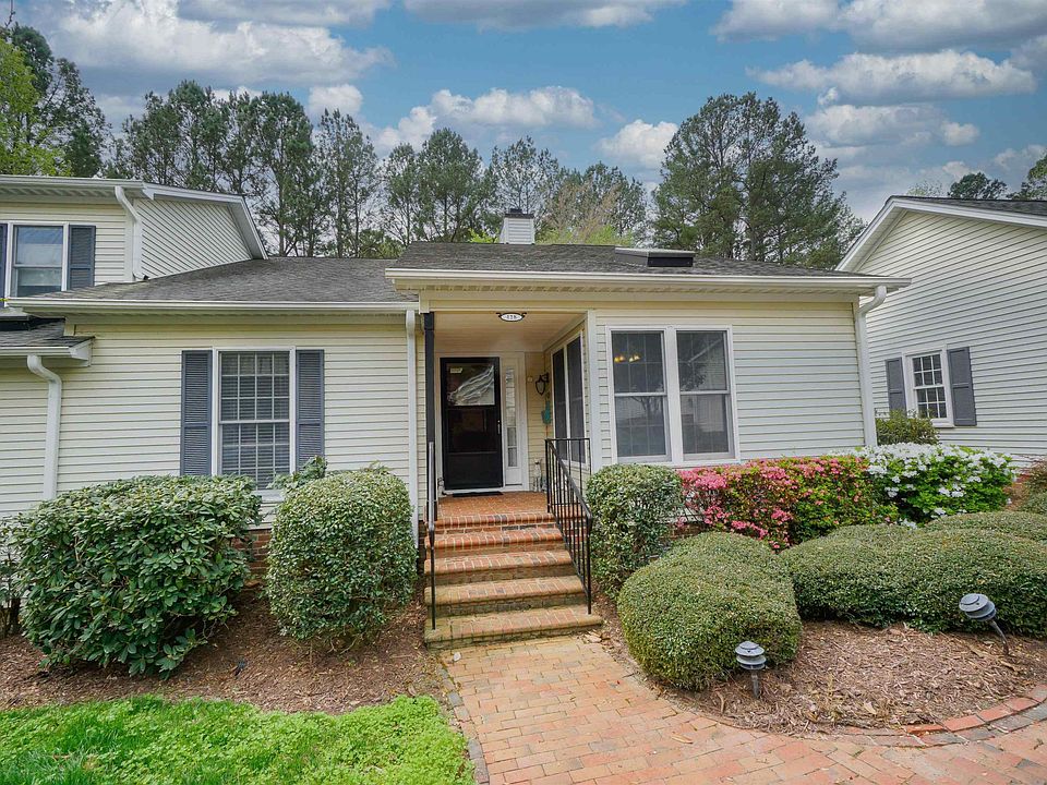 Lovely 1 Level, 2 BR, 2 BA Town Home with Open Floorplan with plenty of room for entertaining friends and family!. Vaulted ceilings, nice upgraded kitchen with Granite Counter tops, new microwave and dishwasher, refrigerator conveys, breakfast nook & skylight for natural light. Large Living Room has 3 skylights and a Gas Fireplace. Separate Dining Room. Parquet floors throughout main living areas. Home features 2 Owners Suites with large bathrooms and walk-in closets. Sunroom/Office has wonderful built-ins and access to a cozy side deck. Plenty of closet space plus attic storage. 1 Car detached garage. New Tankless Water Heater and HVAC in 2021. Washer and Dryer Convey. Fearrington is conveniently located and offers an incredible lifestyle to it's residents.