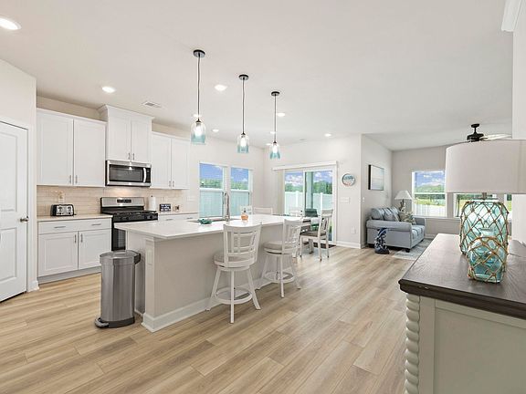Welcome Home to Clear Pond in Carolina Forest! This almost new delightful 3-bedroom, 2-bathroom plus a flex room home has plenty of charm with its inviting curb appeal. Sold fully furnished in a contemporary beach decor. The kitchen, dining area, and living room feature a bright and airy open floor plan. You will love the kitchen with a large work island & breakfast bar, natural gas stove, quartz countertops, subway tile backsplash with under cabinet lighting, pantry and plenty of attractive cabinetry. From the dining area, sliding glass doors open to a covered porch, which leads to an expansive, privately fenced backyard. The expansive master bedroom boasts a tray ceiling, a walk-in closet, and a ceiling fan, while the en suite master bathroom is equipped with a large walk-in tiled shower and dual sinks. The flex room is versatile and can serve as a home office, playroom, or craft room. Presently, it functions as a TV room. Upgrades include an irrigation system, under counter lighting, new kitchen light fixtures, added ceiling fans in every room, including the back porch, storm door and chair rail with framing in the entry hall. Clear Pond's prime location is in the award-winning Carolina Forest School district, close proximity to several first-rate golf courses, Route 501, Carolina Forest Blvd, and an abundance of shopping and great dining options, medical services, Coastal Carolina University & Georgetown/Horry County Technical College. Best of all you are only 12 miles from the beach.
