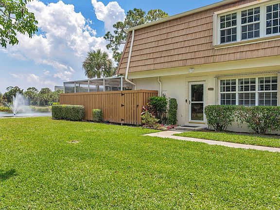3 bedroom, 2.5 bathroom townhome in a most desirable location in Palm Beach Gardens. This unit features an updated kitchen, baths, appliances, and laundry. The upstairs features a spacious primary bedroom, bath, with soaking tub, and walk in closet and 2 additional bedrooms with a hall bath. This unit faces the pond and an expansive lawn which gives the feeling of privacy. The outdoor patio is large and screened in, which is perfect for entertaining large groups. The HOA includes insurance, cable, roof maintenance. New tankless hot water heater and Ring doorbell.