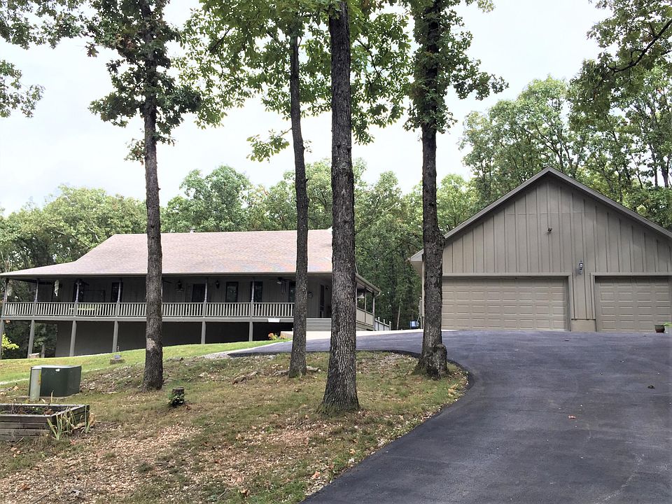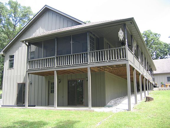 Peaceful, Private & Parklike! This walk-out basement home sitting on 6 ac m/l has a wrap-around porch, back deck & a screen porch off the master. The main floor has an open living, kitchen & dining with cathedral ceiling, hardwood & tile flooring. The kitchen has lots of cabinets, a large pantry, center island with Jenn Aire stovetop. a dishwasher, refrigerator & double ovens. The master bedroom is big & the master bath has a walk-in shower, jetted tub, large closet & double sink vanity. A full guest bath & laundry room complete the main floor. Downstairs is the second living area, 2 (could be 3) bedrooms, a full bath, mechanical room & storm shelter. The oversized 3 car garage is insulated & has a full bath.