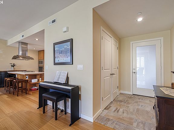 Beautiful condo in John's Landing neighborhood. Short distance to OHSU tram and South Waterfront. New furnace and AC, quartz counters, custom shutters, fresh paint, elevator, ramp, secured parking. Unit 203. HOA covers water, sewer, parking, exterior maintenance, cable and internet, shared NW Natural gas.
